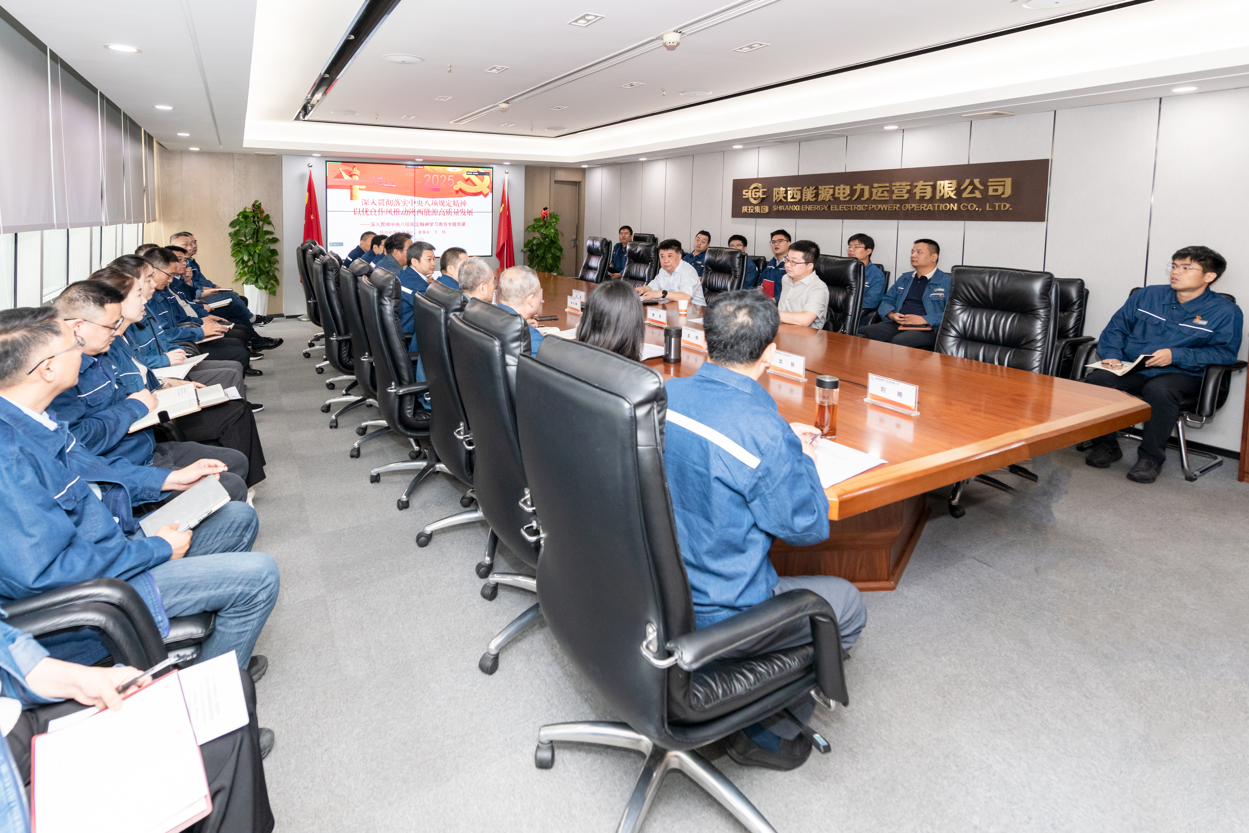 6月25日,集团党委委员、陕西能源党委书记、董事长王栋到公司讲授深入贯彻中央八项规定精神学习教育专题党课。公司党委书记、董事长张小锋主持会议。