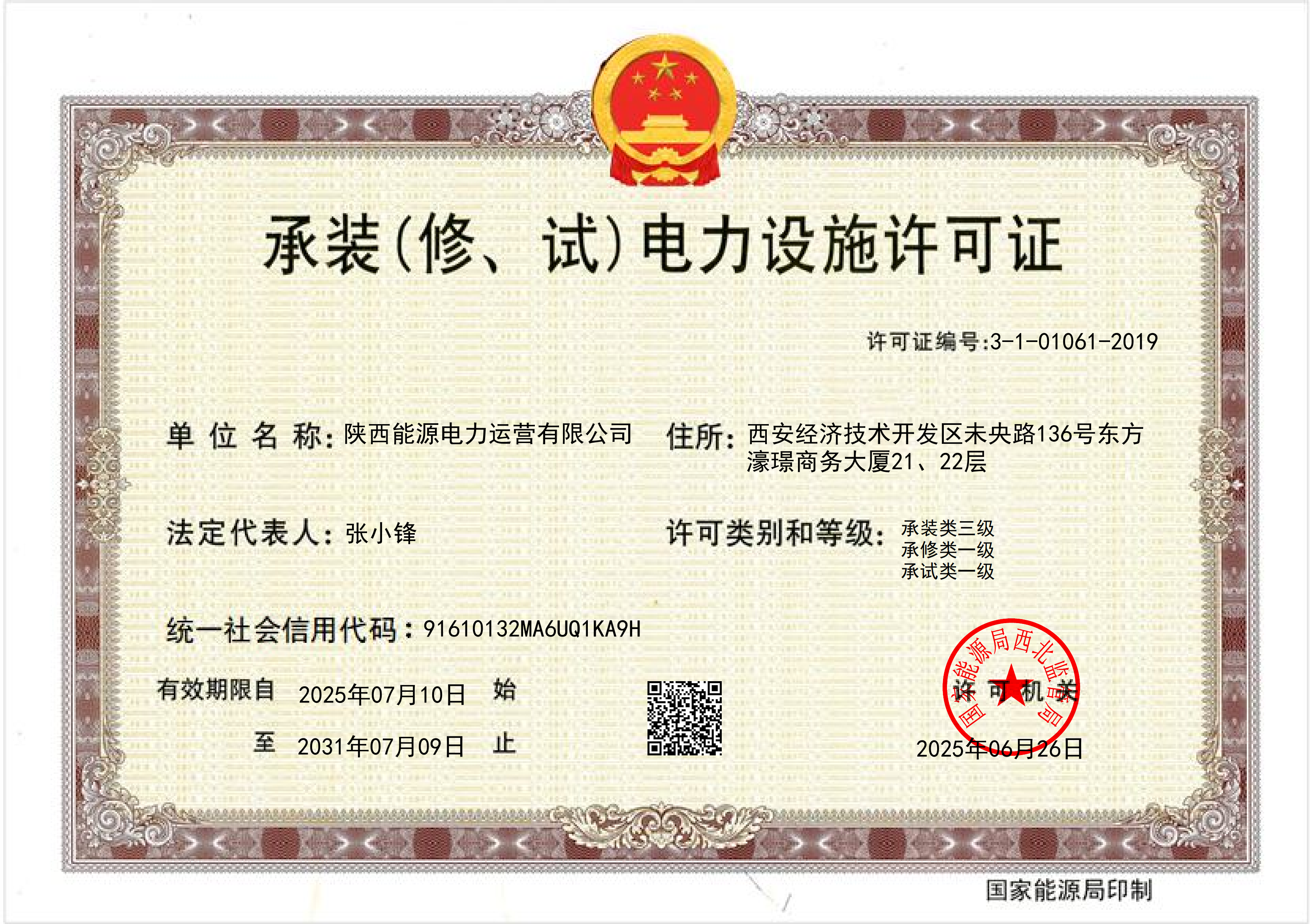 《承装(修、试)电力设施许可证》作为公司开展电力设施维修、试验等核心业务的重要资质基础,其等级与有效性直接关系到公司在电力检维修市场的竞争力与业务拓展空间。此次换证成功,为公司持续深耕电力运维领域,积极参与各类电力工程建设、设备检修及电力试验项目筑牢了坚实根基。