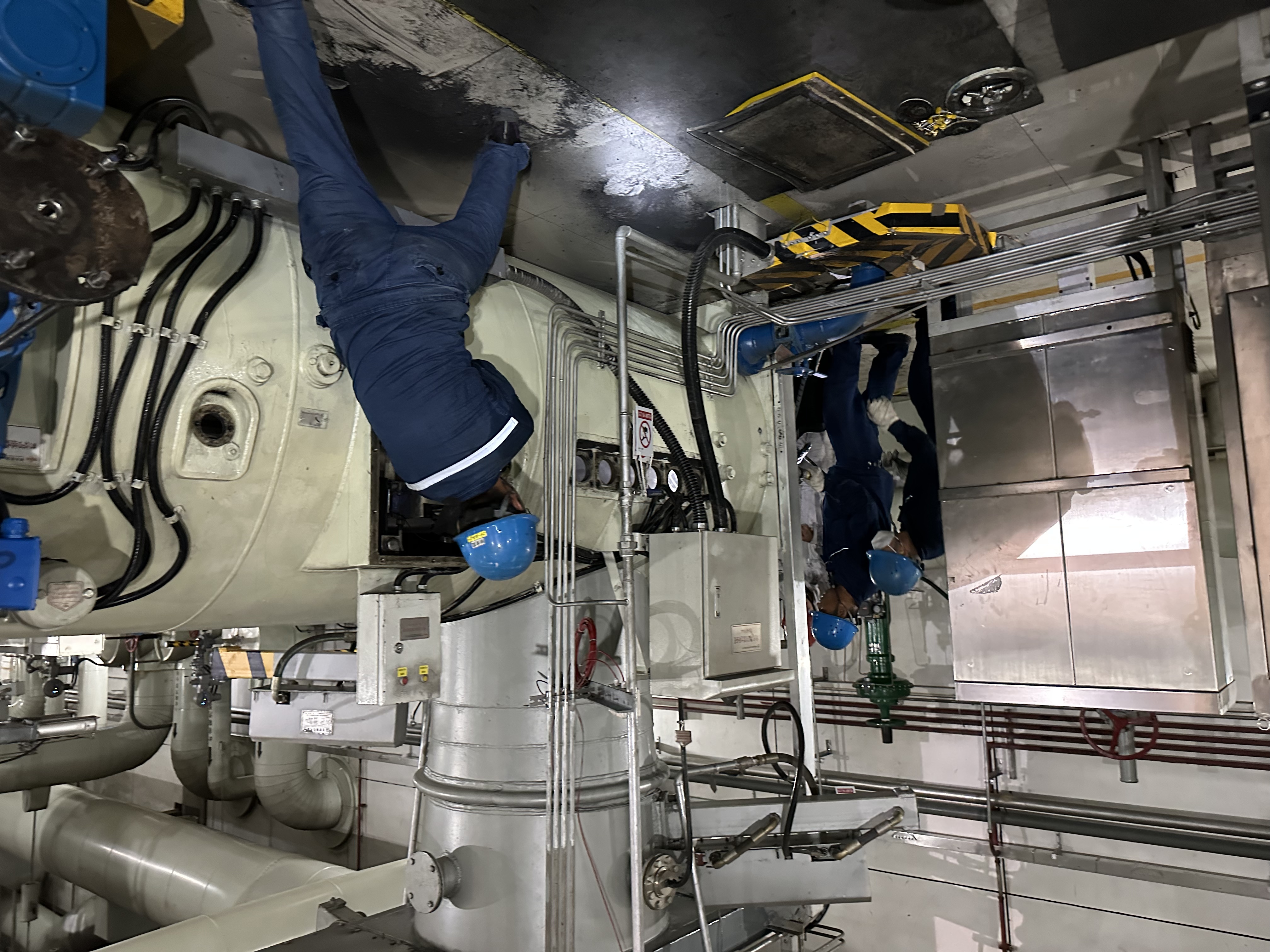 项目部果断启动应急响应,科学研判、精准布局,制定双线作战抢修方案。一路抢修D给煤机,通过优化工序、协同作战,仅用4个多小时完成原本需6-7小时的皮带更换与调试,迅速恢复制粉系统运行,为负荷稳定赢得窗口。另一路迎战更复杂的C给煤机缺陷,创新采用“插管法”临时封堵原煤仓,于当晚22:30实现设备临时投运、开始燃煤,为彻底消缺创造条件。