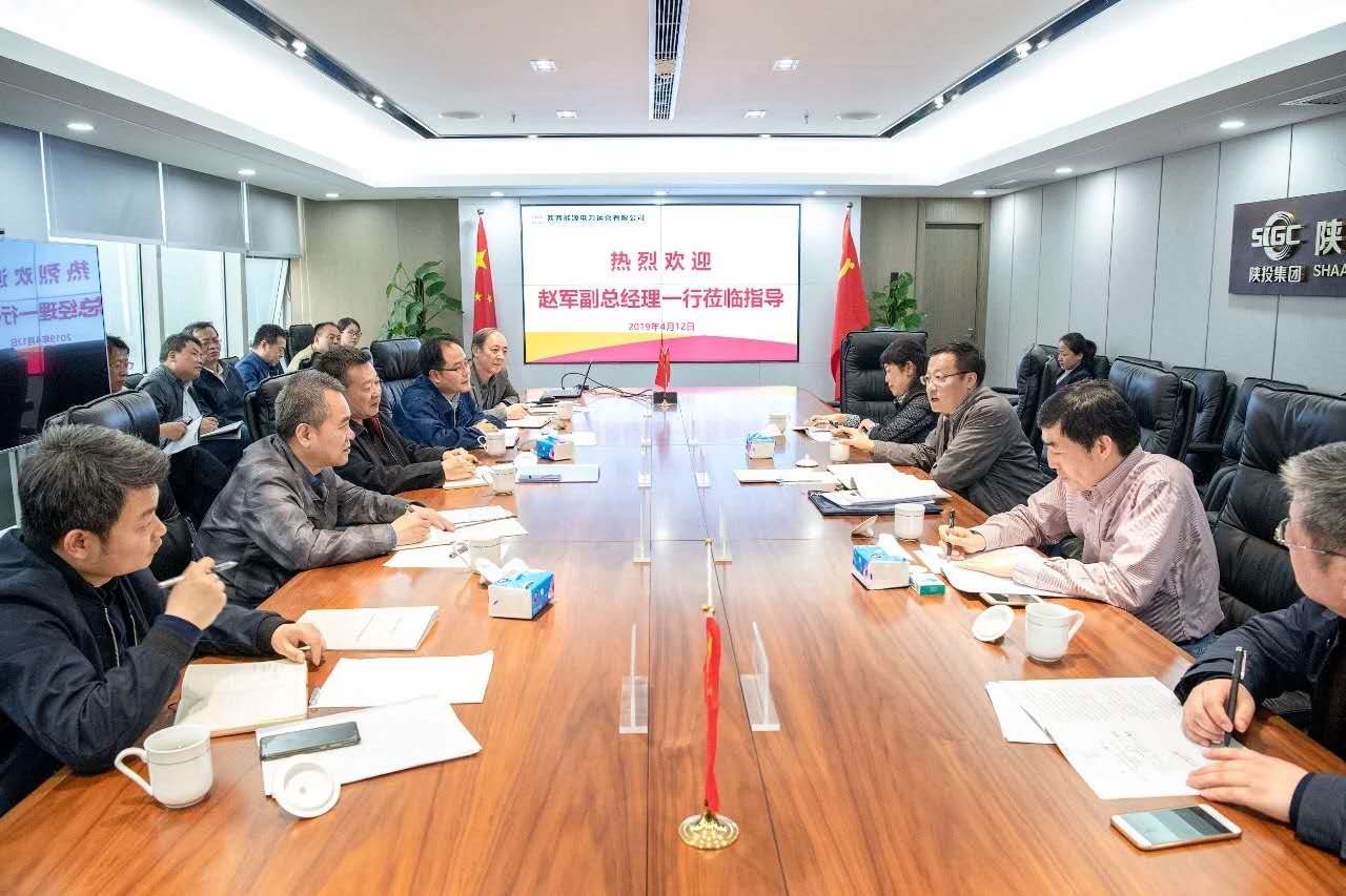 4月12日,集团公司赵军副总经理一行来公司调研指导精细化管理及企业生产经营情况,集团公司经营管理部主任梁军军、副主任田武英、主任科员马腾远陪同调研,并与公司中层以上管理人员进行了深入交流座谈。